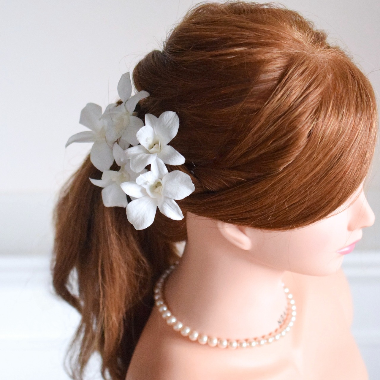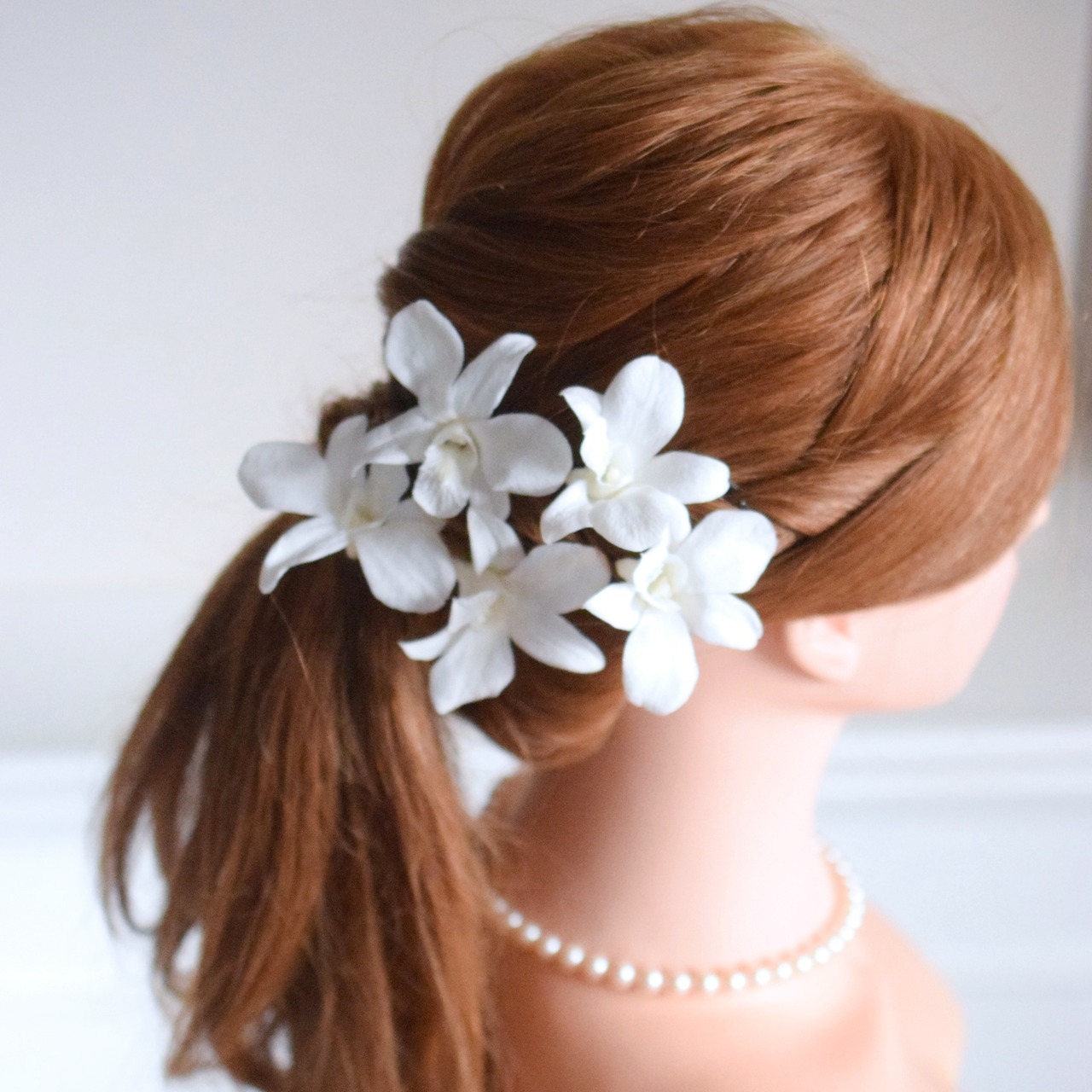 ⋆ミドルsize⋆ ピュアホワイト:デンファレ(蘭)ヘッドドレス《ワイヤー入りピック》