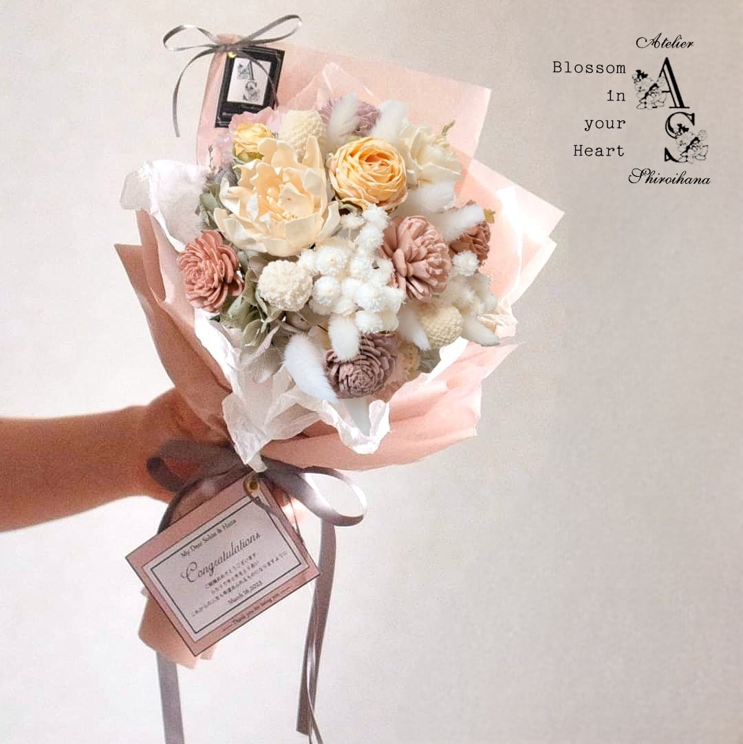 プリザーブドフラワーとドライフラワーの花束